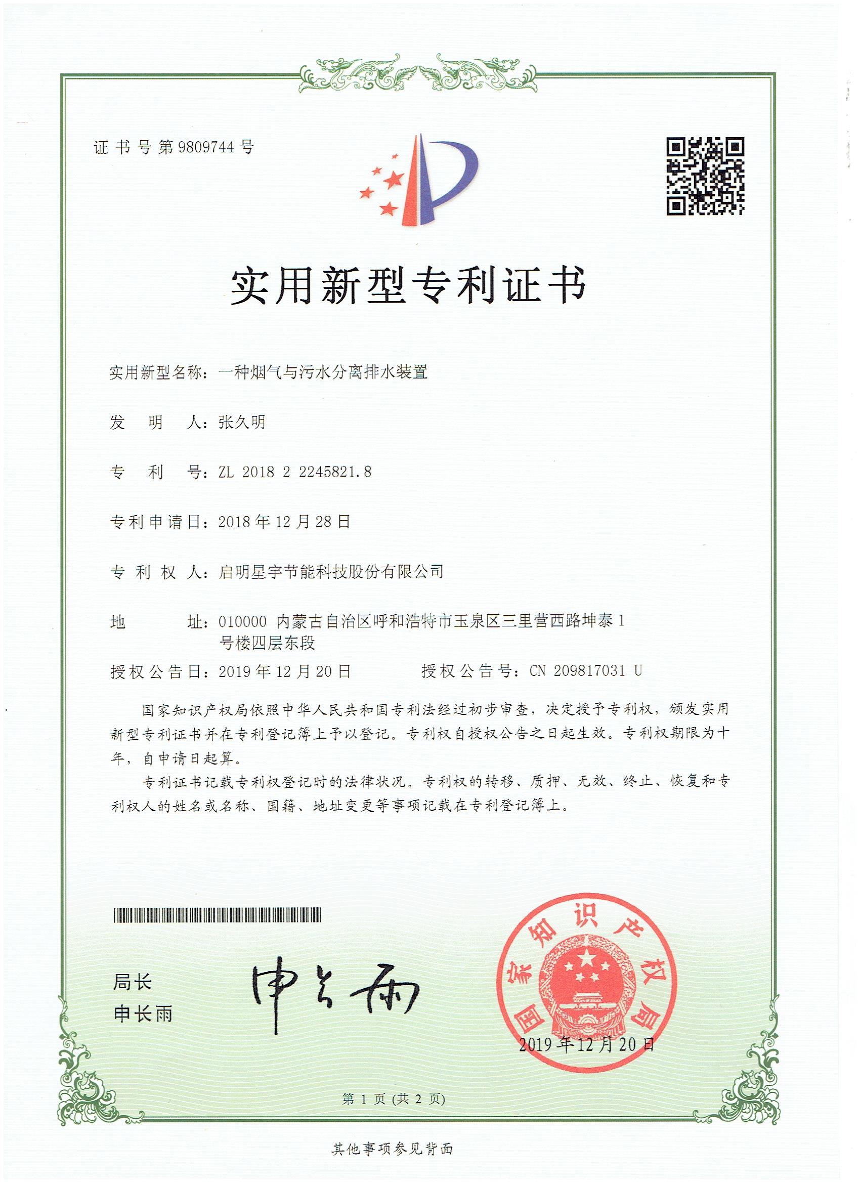 一種煙氣與污水分離排水裝置實用新型專利