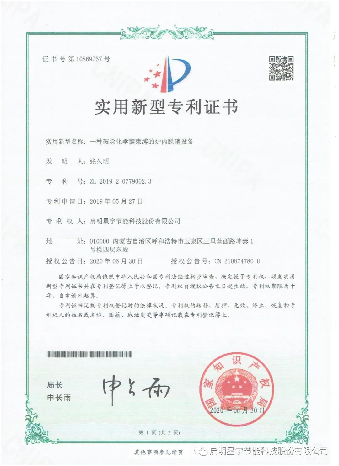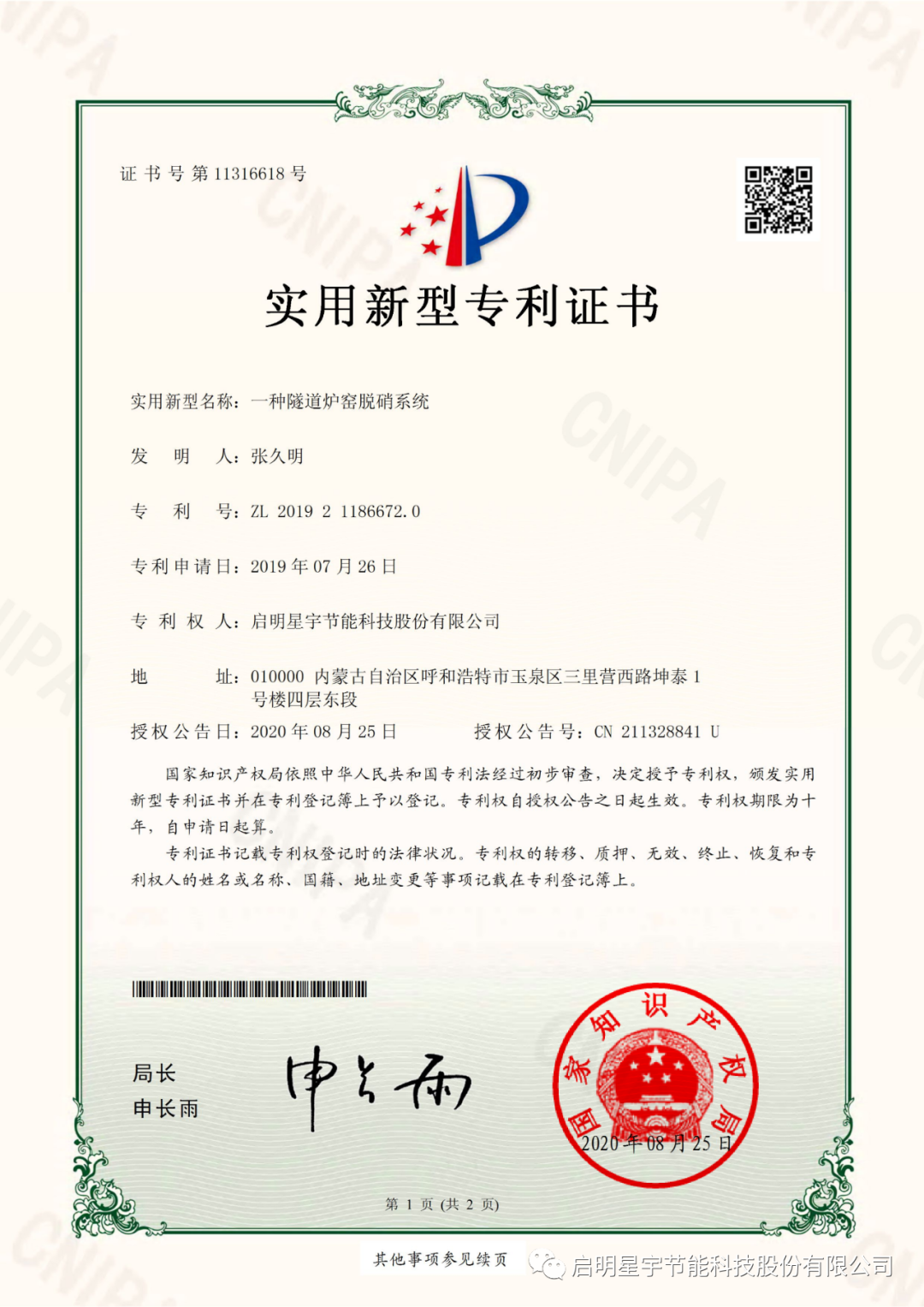 新年巨著,啟明星宇節能科技股份有限公司《工業廢氣零排放技術研究》科研論文在《中國科技人才》期刊成功發表